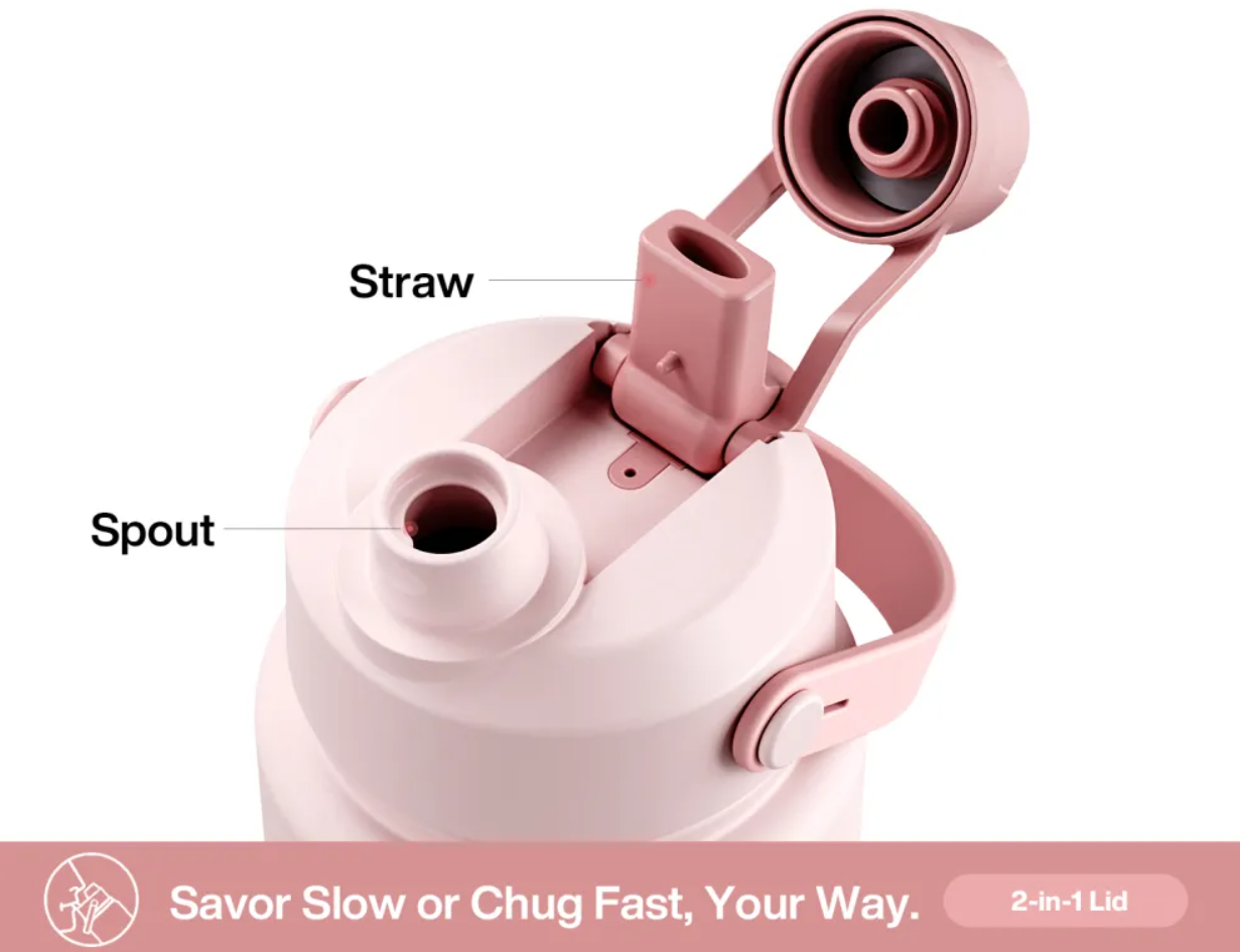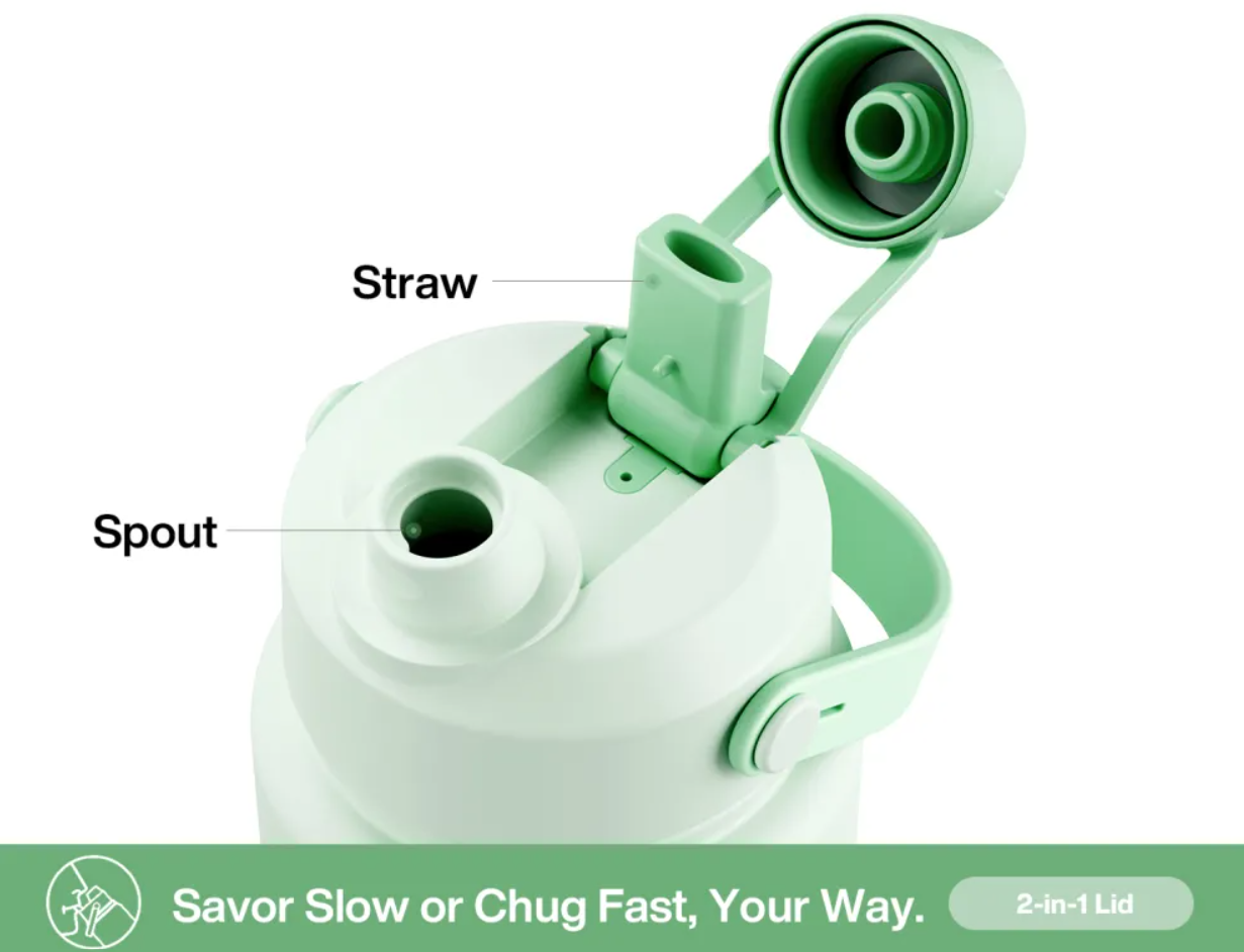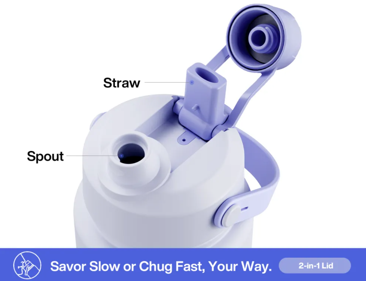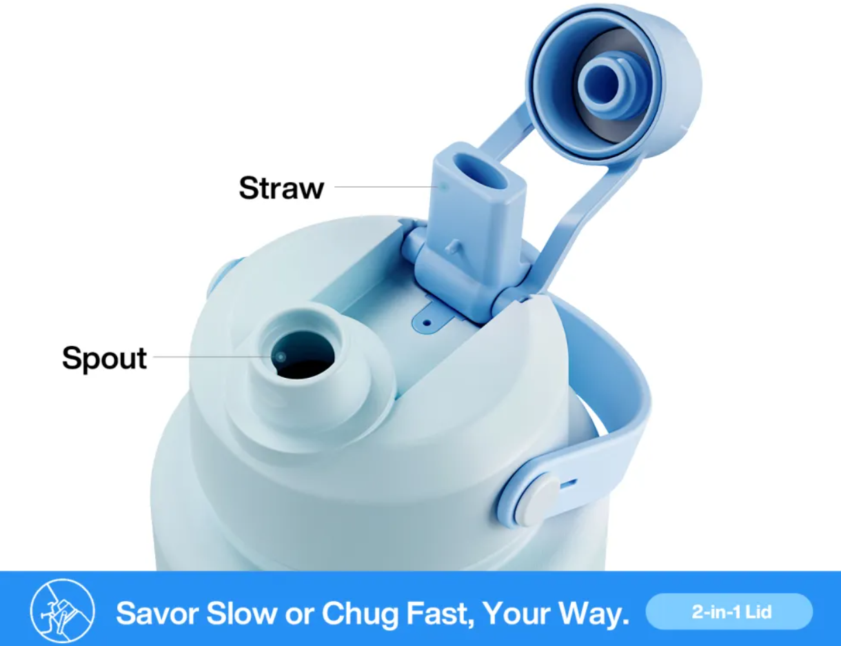 - 2-in-1 Lid, Revolution Unleashed! - Cap chaos? History. Our versatile straw and spout lid? Game-changer. Hot or cold, sips or gulps, even a perfect pour. Suck, chug, pour, all in one.